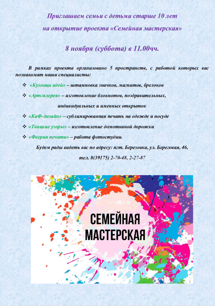 Приглашаем семьи с детьми на открытие «Семейной мастерской»